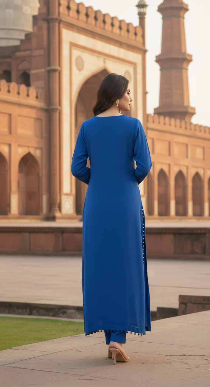 Crafted from the finest pure raw silk, this long shirt showcases intricate loops and button accents for a touch of classic charm. Designed for versatility and comfort, it comes with a coordinating raw silk trouser (80 gsm), making it a perfect choice for graceful daytime looks or elegant evening wear.