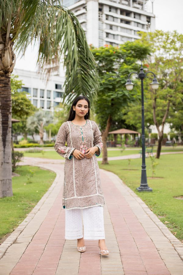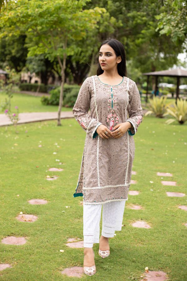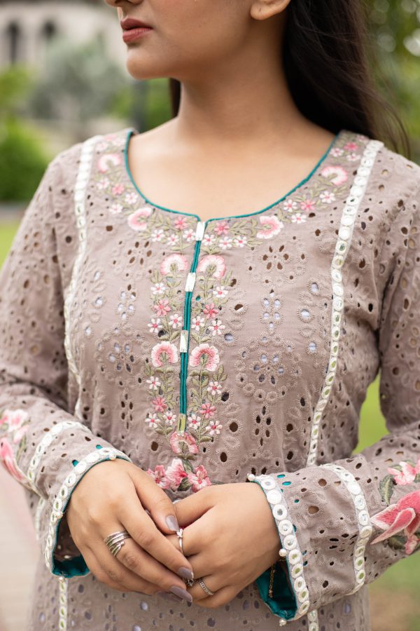 Lawn cotton chicken shirt with beautiful teal green details mirror rectangular buttons, amazing embroidery work, and lace details.