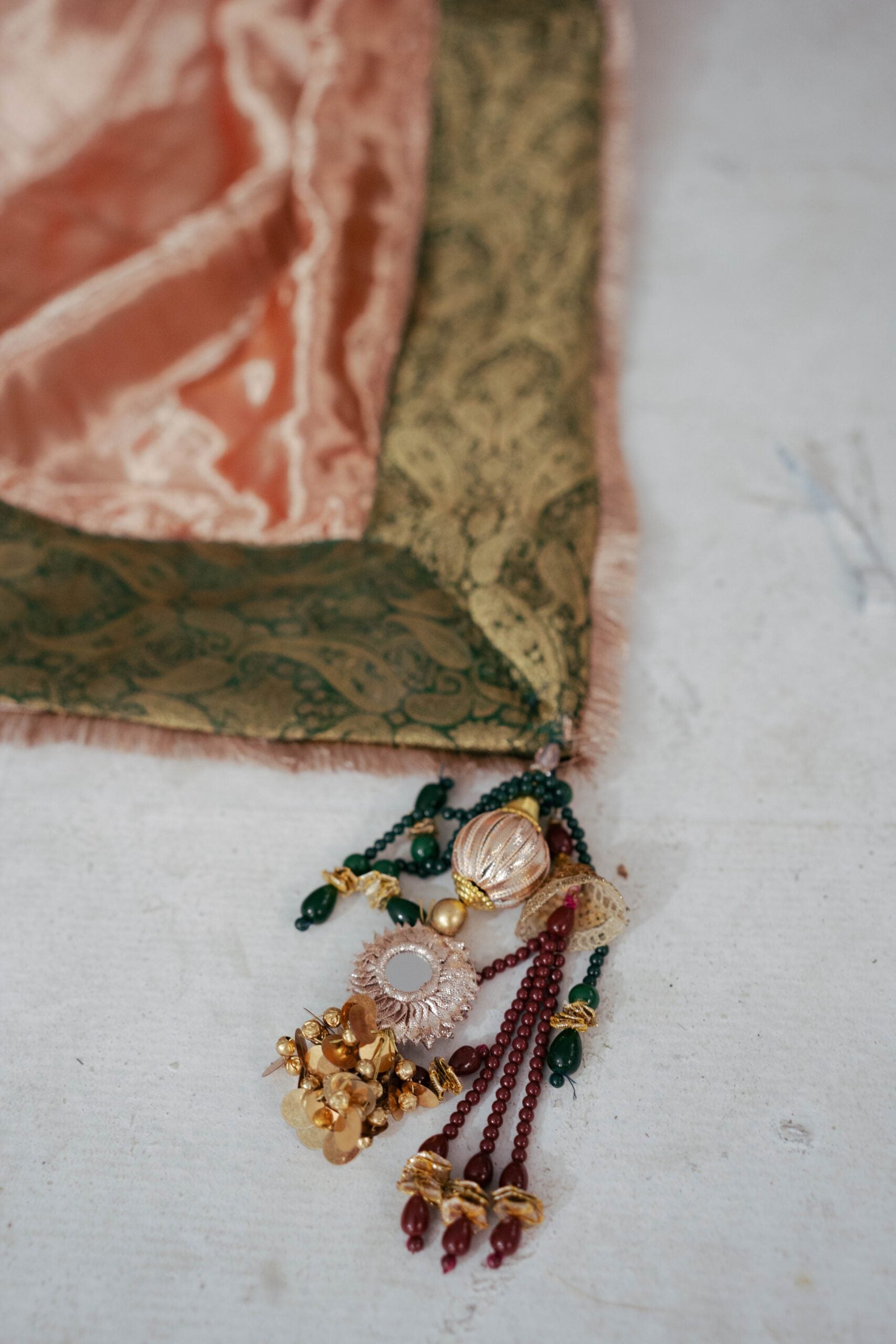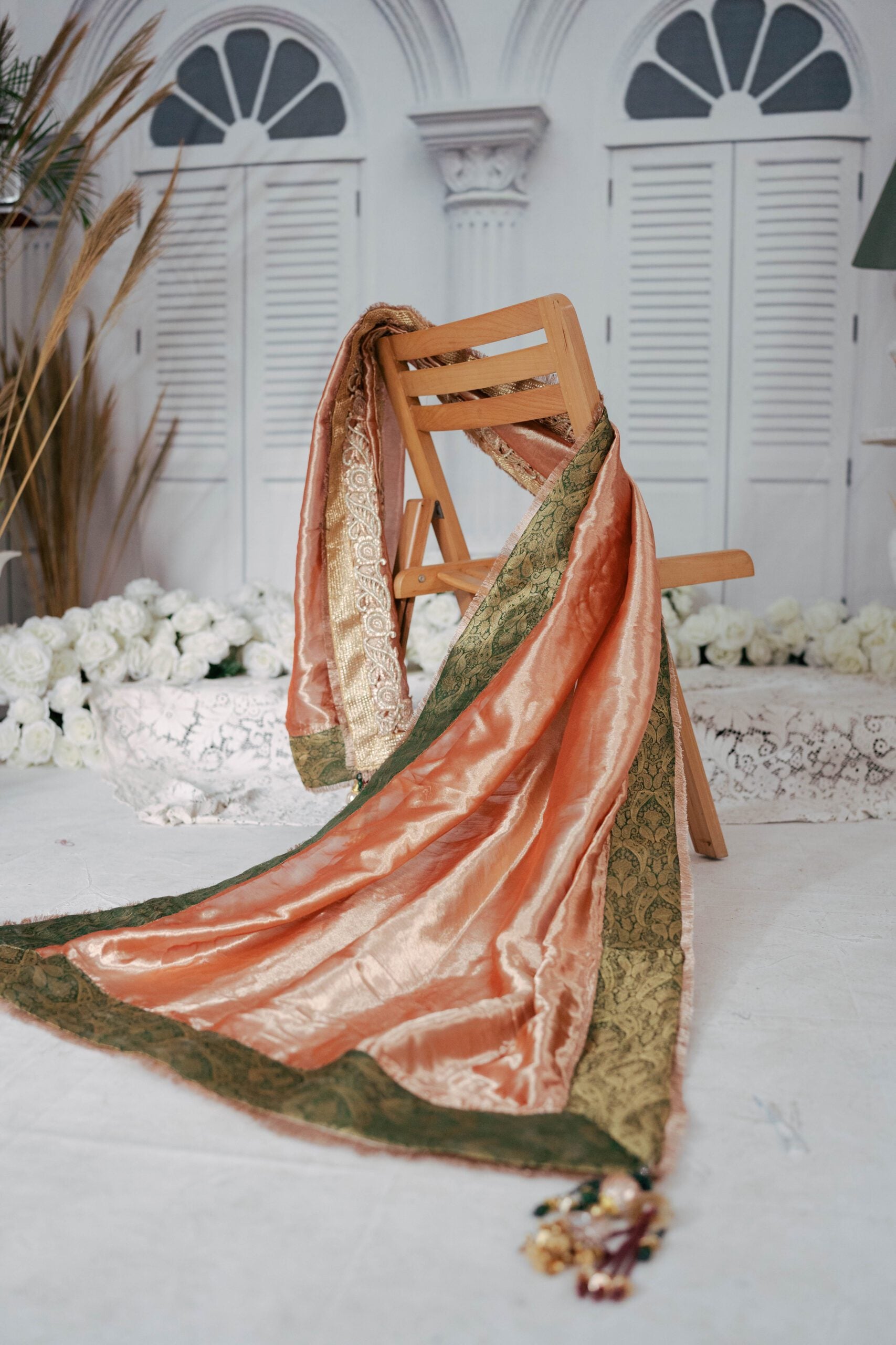 Timeless elegance in the form of pure fabric makes this dupatta stand out. Handmade details, specially crafted dangling, mughal finishing with traditional jamawar. Look your best at any event, pair it with a plain raw silk kurta trouser or jazz it up with trendy peshwas