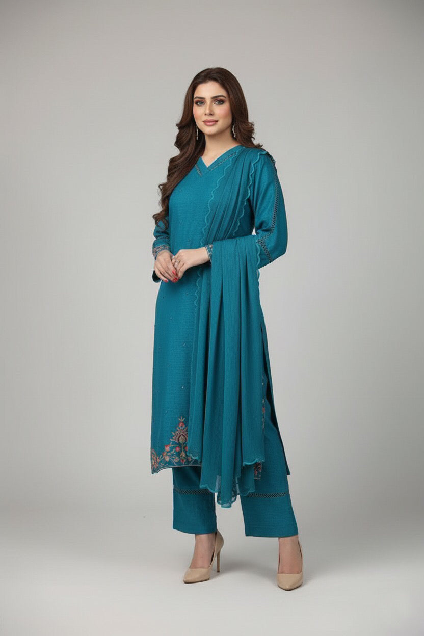 Paired with a soft medium silk dupatta, finished with elegant scalloped borders for a refined and classy look.
