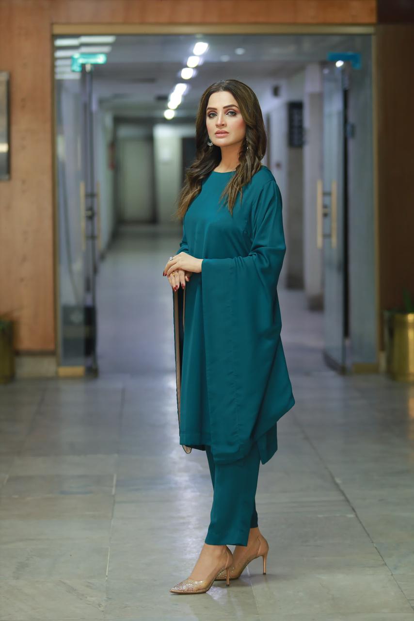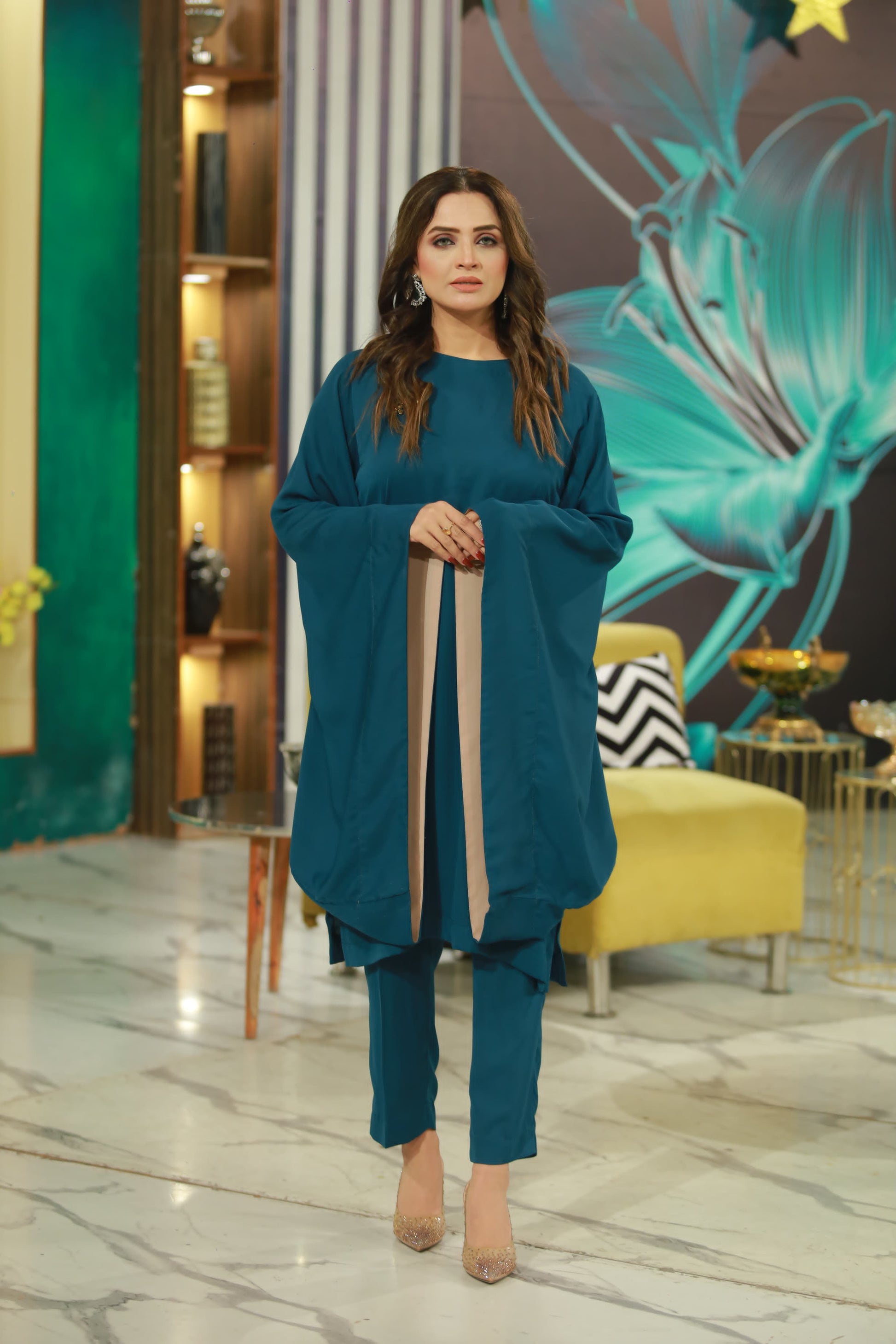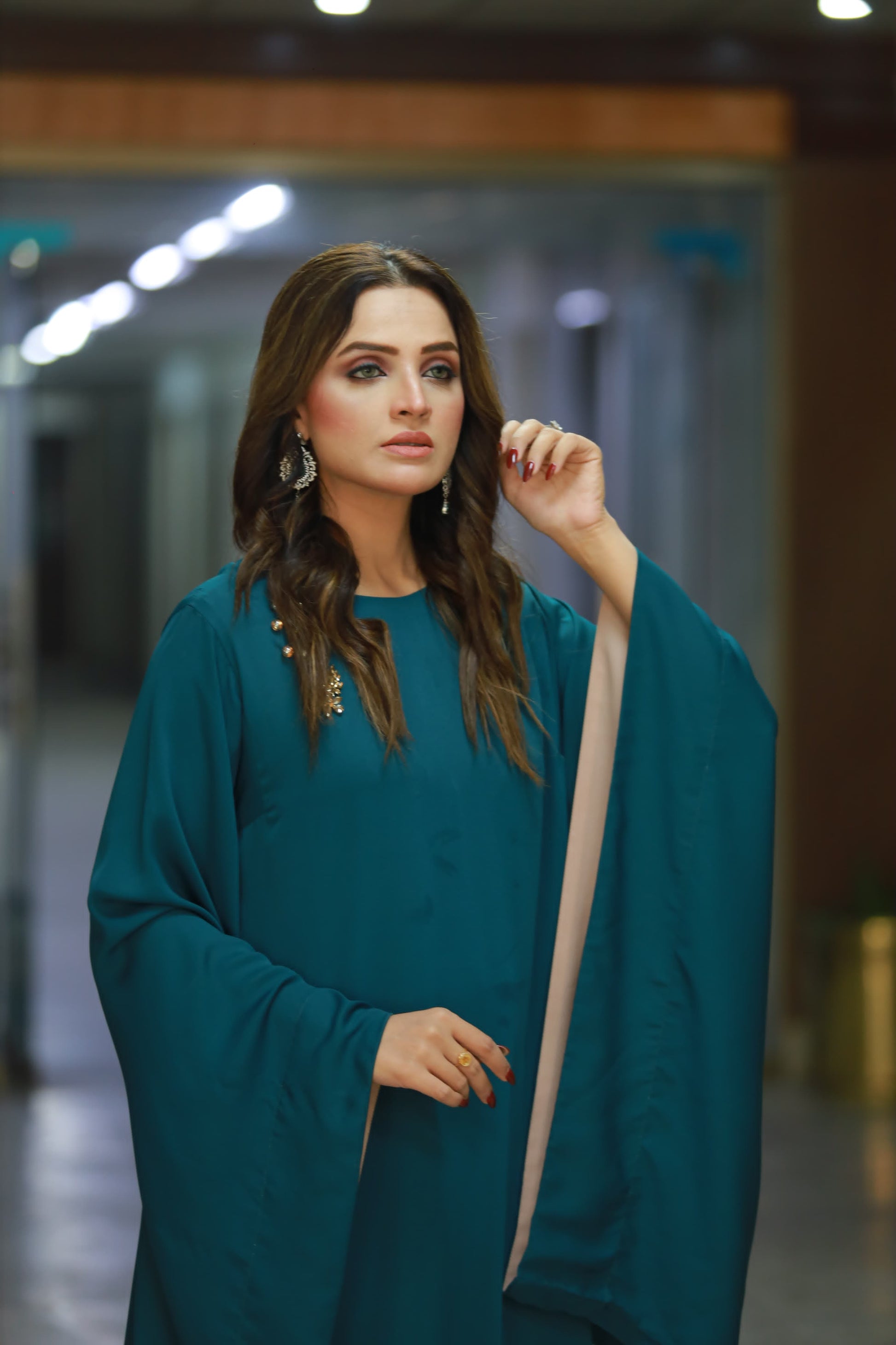A perfect fusion of traditionally and modern kimono sleeves. Green Flo shirt and trouser is all about style! Georgette shirt with kimono sleeves and assorted embellishment makes it look elegant and wearable at every occasion.
