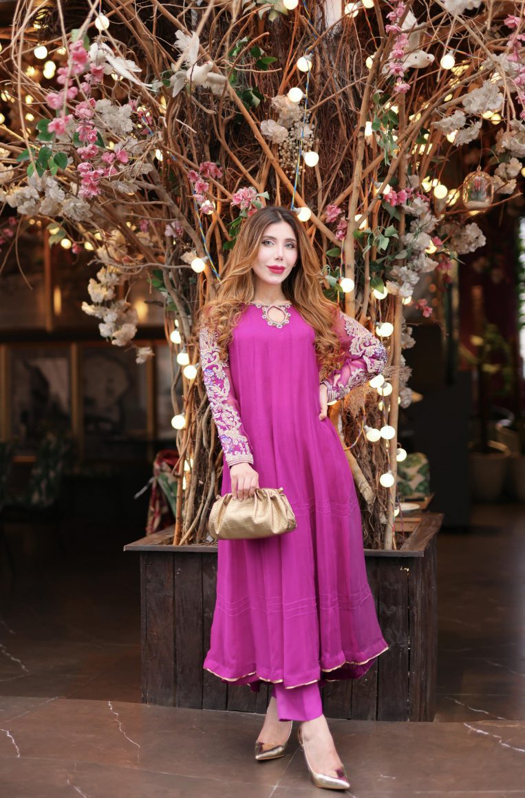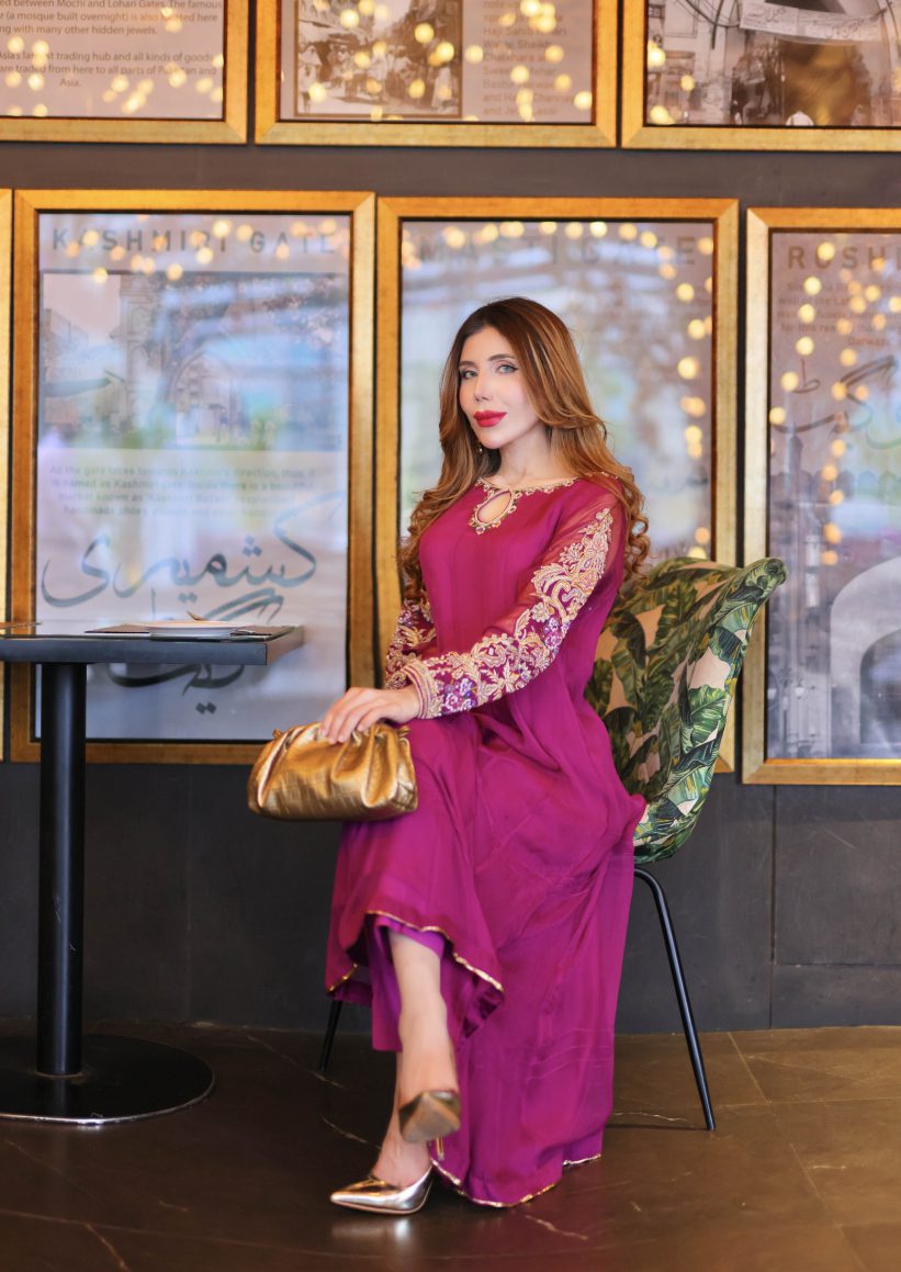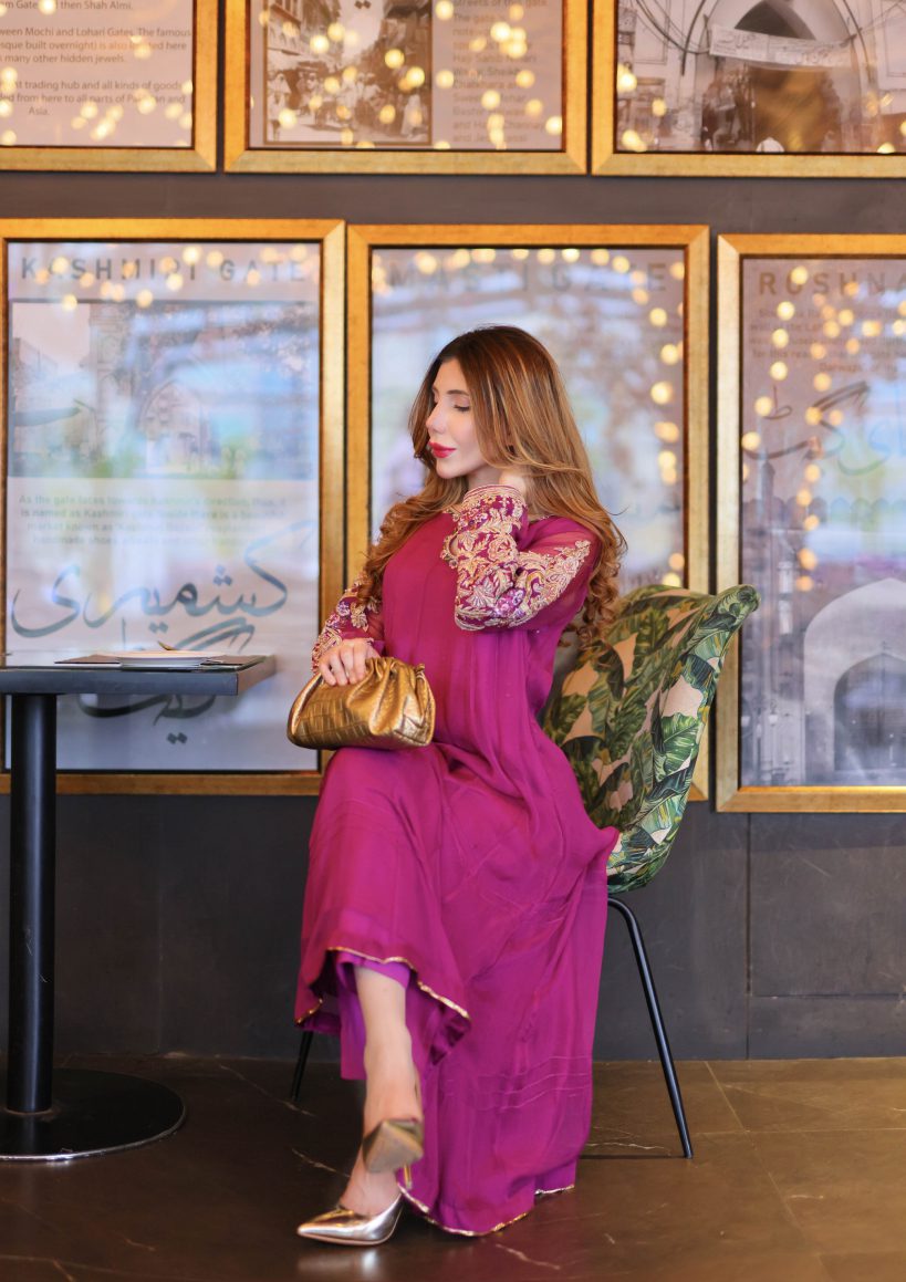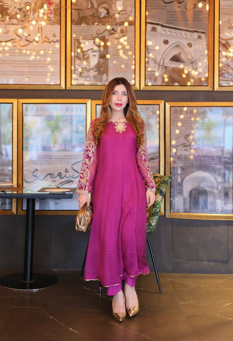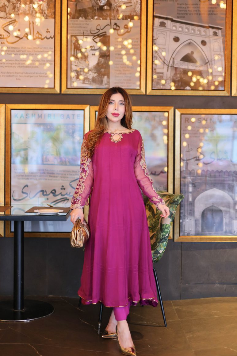 We have used the most beautiful shade of purple for this outfit. The neckline and sleeves are handworked to perfection. We have used tilla, resham, beadwork, pearls, and other intricate details to make this article stand out. Comes with straight trousers and a chiffon dupatta