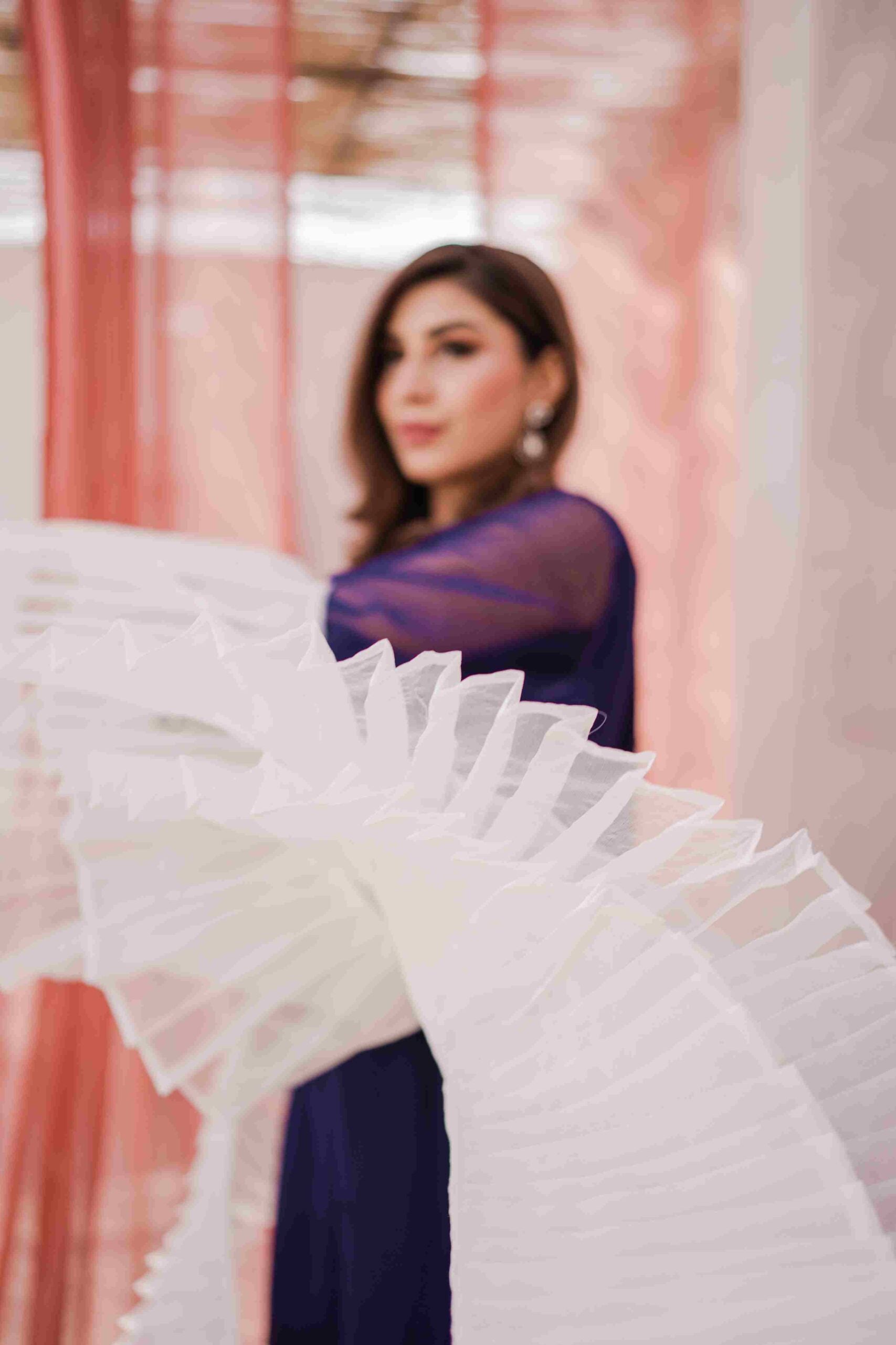 Pleated white organza dupatta made using the best fabric and immaculate finish will make you stand out.